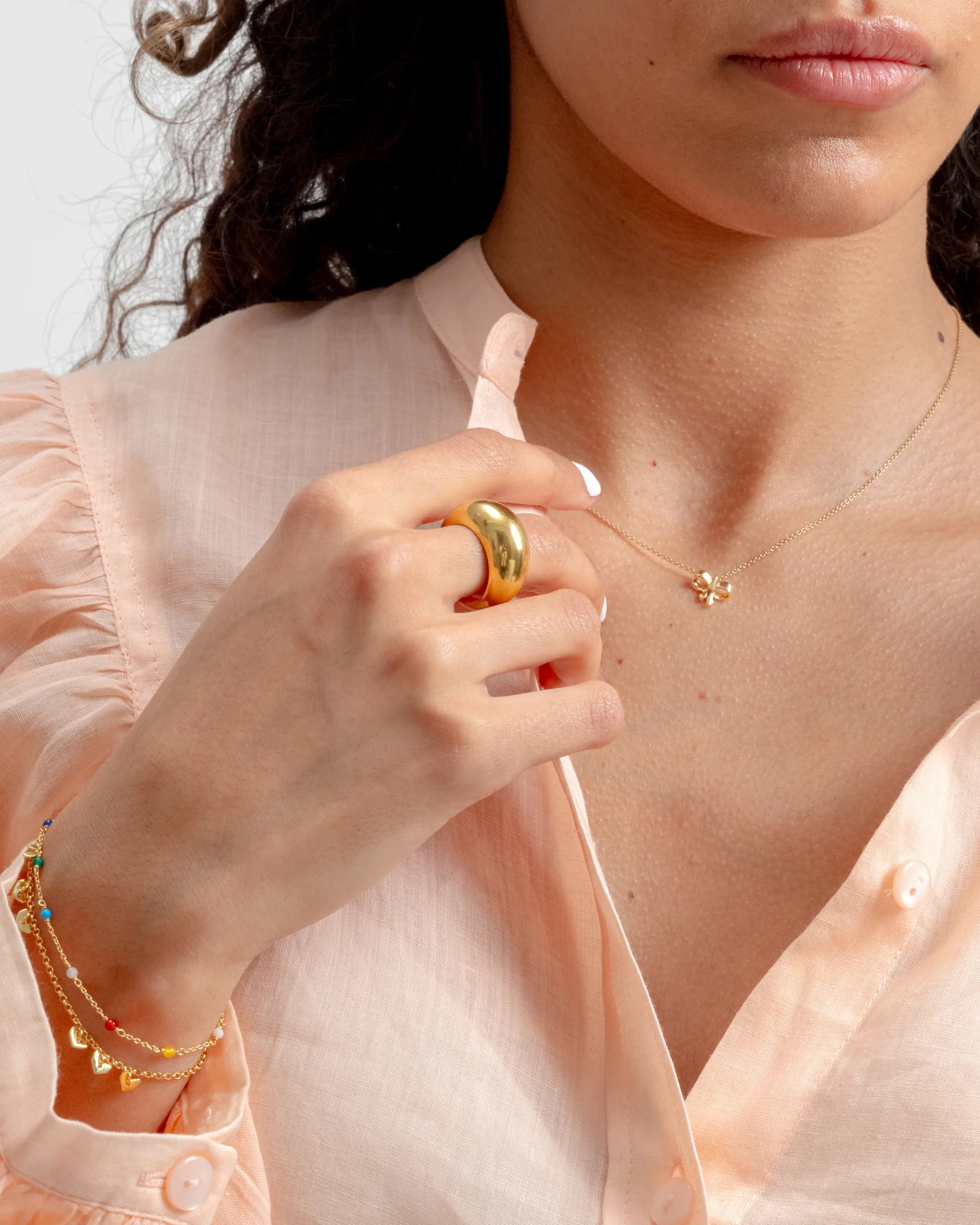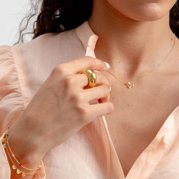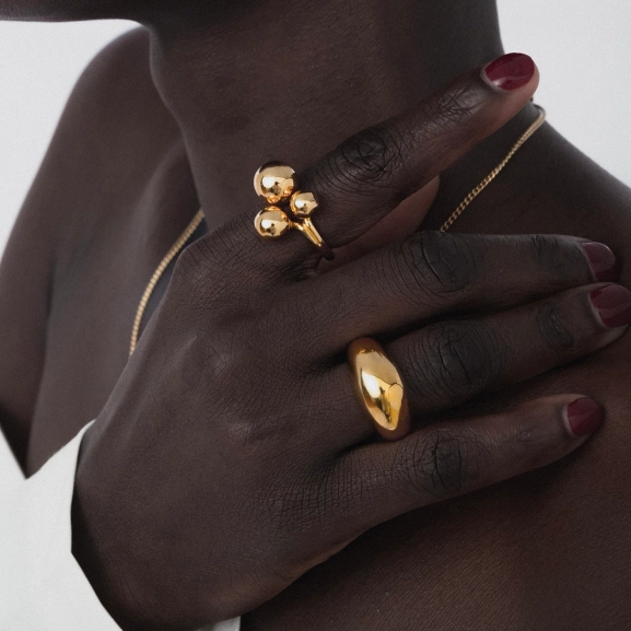 Sister P hat einen großen Ring aus echtem, 100 % recyceltem Sterlingsilber kreiert, der mit 18-karätigem Gold plattiert ist und so einen eleganten und zeitlosen Stil erhält. Die Innenseite ist sanft abgerundet und bietet so maximalen Tragekomfort den ganzen Tag. Dieser Ring ist perfekt, um ihn solo für einen stilvollen Look zu tragen oder mit dem gleichen Modell in Silber für eine persönliche Note zu kombinieren. Wenn Sie zwischen zwei Größen liegen, empfiehlt Sister P, die größere zu wählen – so sitzt der Ring besonders bequem!