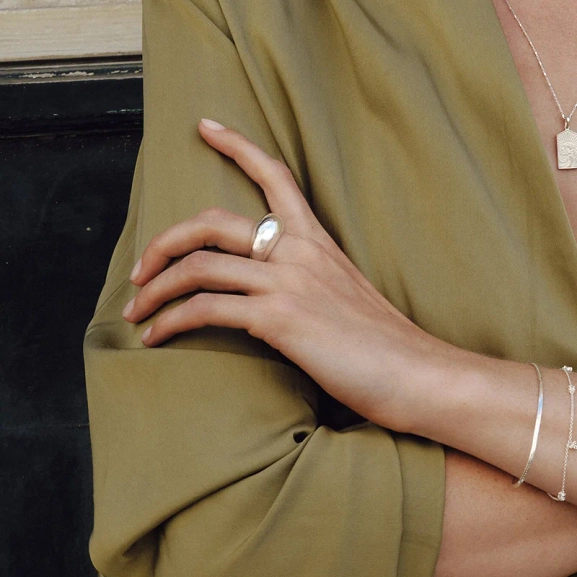 Sister P hat einen großen Ring aus echtem Sterlingsilber kreiert, der zu 100 % aus recyceltem Material besteht. Die sanft gerundete Innenseite sorgt für optimalen Tragekomfort den ganzen Tag. Dank des stilvollen Designs passt der Ring sowohl solo als auch in Kombination mit der vergoldeten Variante und unterstreicht so Ihren individuellen Stil. Wenn Sie zwischen zwei Größen schwanken, empfiehlt Sister P die größere – so sitzt der Ring besonders bequem. Bereichern Sie Ihren Alltagslook mit diesem nachhaltigen Lieblingsstück!