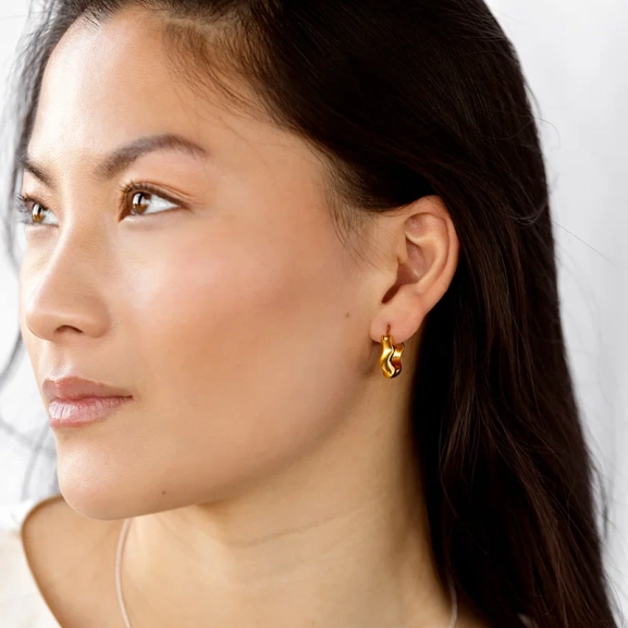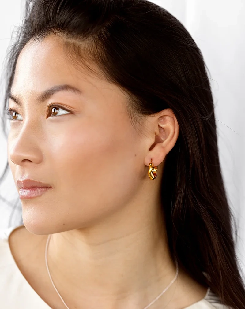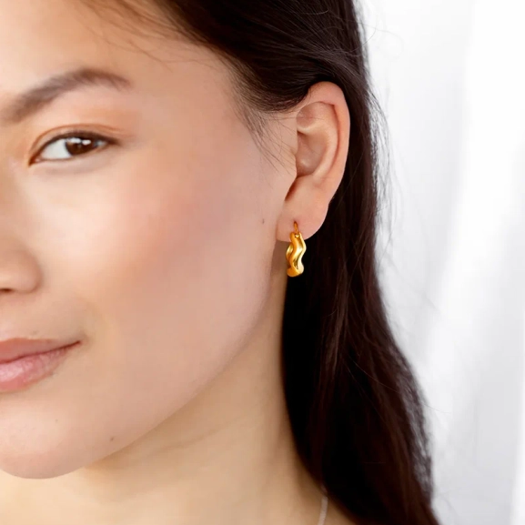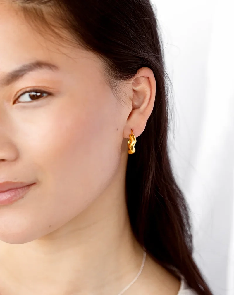 Die Bolded Wavy Ohrringe Gold von Syster P sind die perfekte Kombination aus Eleganz und Haltbarkeit. Mit ihrem leichten In-Ear-Gefühl und dem schönen Wellenmuster sorgen sie für ein einzigartiges und glänzendes Gefühl, das ins Auge fällt. Sie bestehen zu 100 % aus recyceltem Sterlingsilber und sind mit 18-karätigem Gold plattiert. Sie sind sowohl langlebig als auch luxuriös. Der Verschluss ist einfach und sicher – einfach den Haken in die Schnalle schieben. Vervollständigen Sie Ihren Stil mit diesen atemberaubenden Ohrringen und kombinieren Sie sie mit anderen auffälligen Schmuckstücken für einen kompletten Look.