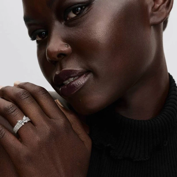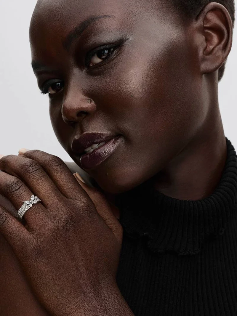 Tragen Sie ein Statement-Piece, das funkelt und aufwertet. Unser breiter Schmetterlingsring aus Sterlingsilber ist mit 99 Zirkonia verziert, die Schönheit und Stärke vereinen.