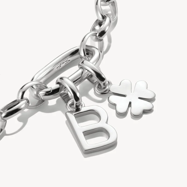 Vierblättriges Kleeblatt in Silber, ein zeitloses Symbol für Glück und Freude. Ein Charm, der Freude verbreitet und sich gut als Geschenk eignet.