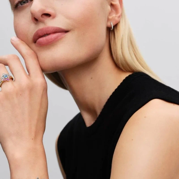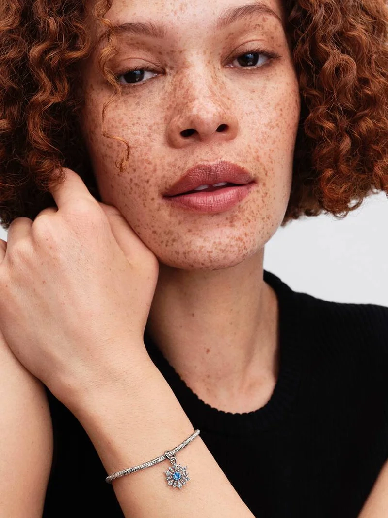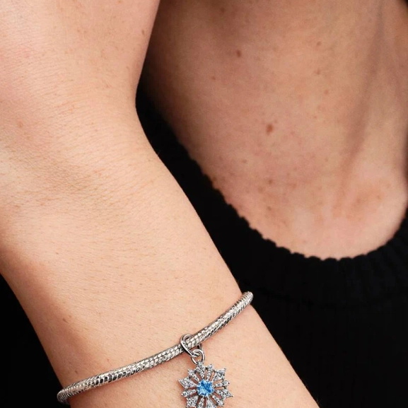 Dieser Anhänger aus Sterlingsilber vermittelt die Stärke und Eleganz von Königin Elsa und funkelt mit eisblauen synthetischen Kristallen und klarem Zirkonia – eine funkelnde Feier innerer Stärke und Transformation.