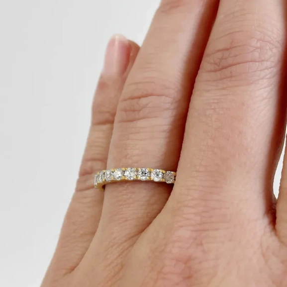 Entdecken Sie Eterna 04 Gold, einen Verlobungsring, der zeitlose Eleganz mit modernem Design verbindet. Dieser schlanke Eternity-Ring mit einer Breite von nur 2 mm ist mit funkelnden Diamanten von 0,03 Karat in einer klassischen Krabbenfassung verziert. Perfekt als Symbol der ewigen Liebe oder zur Feier der Meilensteine des Lebens.