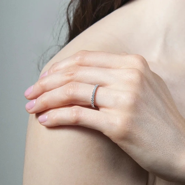 Entdecken Sie Eterna 04 Palladium, einen Verlobungsring, der zeitlose Eleganz mit moderner Innovation verbindet. Dieser schlanke Eternity-Ring mit einer Breite von nur 2 mm ist mit funkelnden Diamanten von 0,03 Karat in einer klassischen Krabbenfassung verziert. Perfekt als Symbol der ewigen Liebe oder zur Feier der Meilensteine des Lebens.