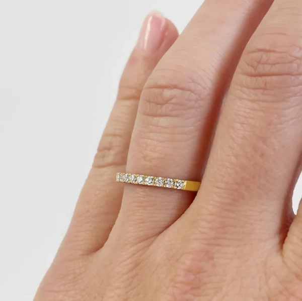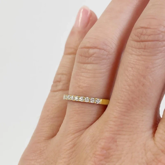 Eterna 07 Gold ist der perfekte Verlobungsring, ideal auch als Ehering. Mit einem eleganten abgerundeten Stab und 0,02-Karat-Diamanten in einer handgeschliffenen Fischmusterfassung verbindet es zeitlose Schönheit mit moderner Handwerkskunst. Dieser Ring ist eine trendige Wahl für Stilbewusste.
