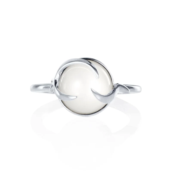 Einfachheit und Symbolik treffen in diesem Ring aufeinander. Ein runder Mondstein wird von sanften Formen aus Silber umarmt, wie ein Samenkorn in der sicheren Umarmung der Erde. Ein Schmuckstück, das leise von Träumen, Hoffnungen und neuem Leben spricht.