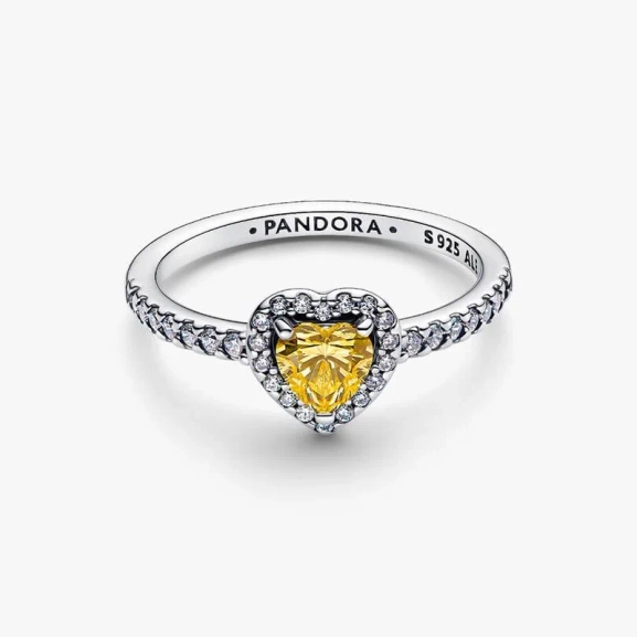 Lassen Sie Ihr Herz höher schlagen. Dieser Ring ist mit einem gelben, herzförmigen Kunstkristall verziert, der von einem Kranz aus Pavé-Steinen umgeben ist. Er ist ein Symbol für Hingabe und Eleganz.