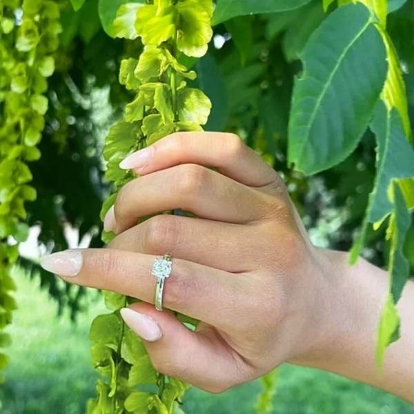 Glimmer 1.00 Platinum, ein Verlobungsring mit einem beeindruckenden Diamanten von 1,00 Karat, besetzt mit vier Krappen an einem eleganten schmalen Band. Dieser Solitärring vereint schwedische Handwerkskunst mit zeitlosem Design. Komplett mit SR2003 für ein brillantes Diamanten-Trio.