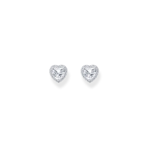 • Produktname: Halo-Ohrstecker mit weißem Stein in Herzform Silber