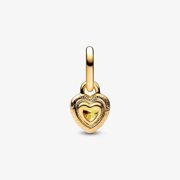 Feiere die Liebe mit dem Herz Mini-Charm-Anhänger, der mit 14 Karat Gold plattiert ist und einen herzförmigen gelben Cubic Zirkonia trägt. Dieses bezaubernde Schmuckstück hat einen strukturierten Metallrand, der ein schlagendes Herz symbolisiert.