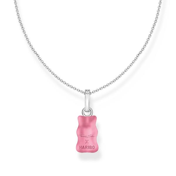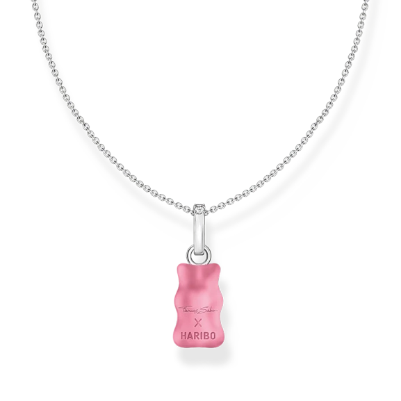 Kette mit pinkem Goldbären-Anhänger und Steinen Silber