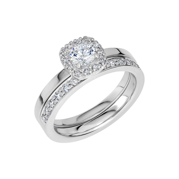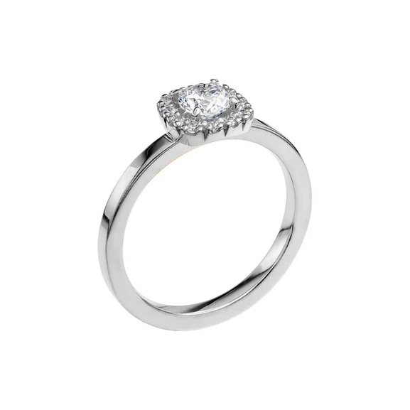 Mit seinem kissenförmigen Ausdruck ist Love 04 aus Weißgold eine traumhafte Interpretation eines Halo-Rings. Der Mittelstein von 0,40 ct ist von zwölf kleinen Diamanten umgeben, die einen glamourösen, aber stilvollen Gesamteindruck erzeugen. Perfekt für alle, die einen klassischen Ring mit etwas mehr Eleganz wünschen.