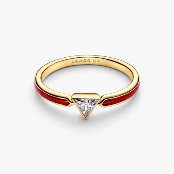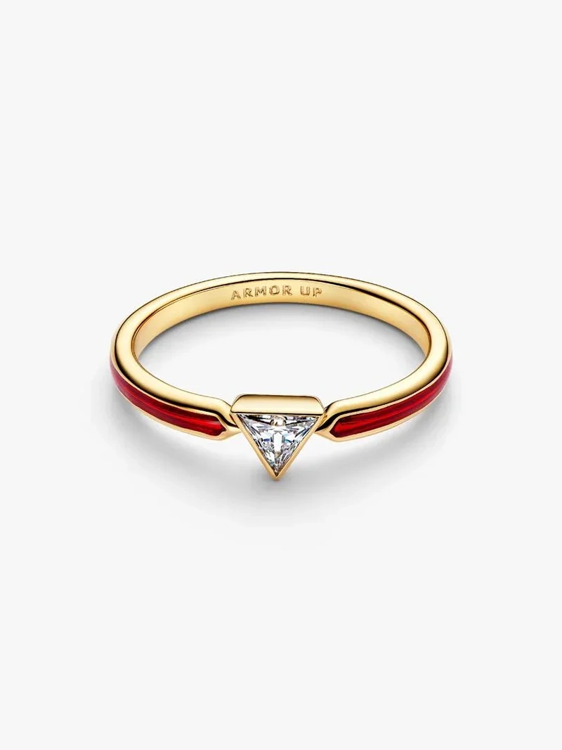 Mit unserem von Iron Man inspirierten Ring haben Sie die Action immer dabei, egal wohin Ihr Abenteuer Sie führt. Er ist mit 14 Karat Gold beschichtet und verfügt über einen dreieckigen Stein sowie die Gravur „ARMOR UP“.