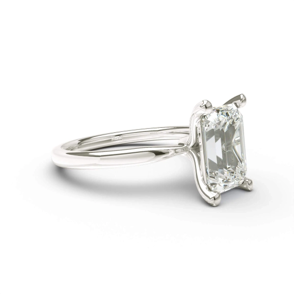 In Weißgold präsentiert sich der North Emerald mit einer kühlen und unverwechselbaren Ausstrahlung, wobei die Klarheit und Tiefe des smaragdgeschliffenen Diamanten im Mittelpunkt stehen. Der Schliff erzeugt ein kontrolliertes Lichtspiel, das die Qualität des Steins hervorhebt, anstatt maximale Brillanz zu erzeugen. Ein Verlobungsring mit klarer Form und moderner Eleganz.