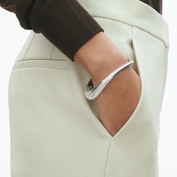 Ein silbernes Armband mit den ineinandergreifenden Formen der Offspring-Kollektion. Die weichen Linien und die polierte Oberfläche erzeugen einen harmonischen Ausdruck, in dem Symbolik und skulpturale Form des Designs zusammenwirken.