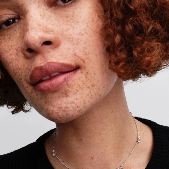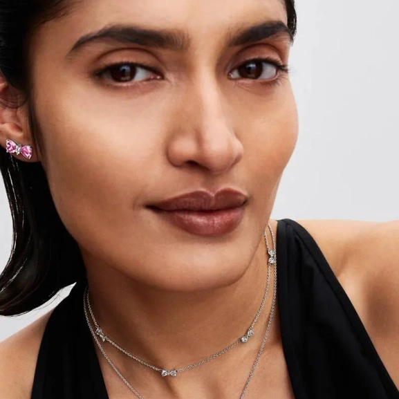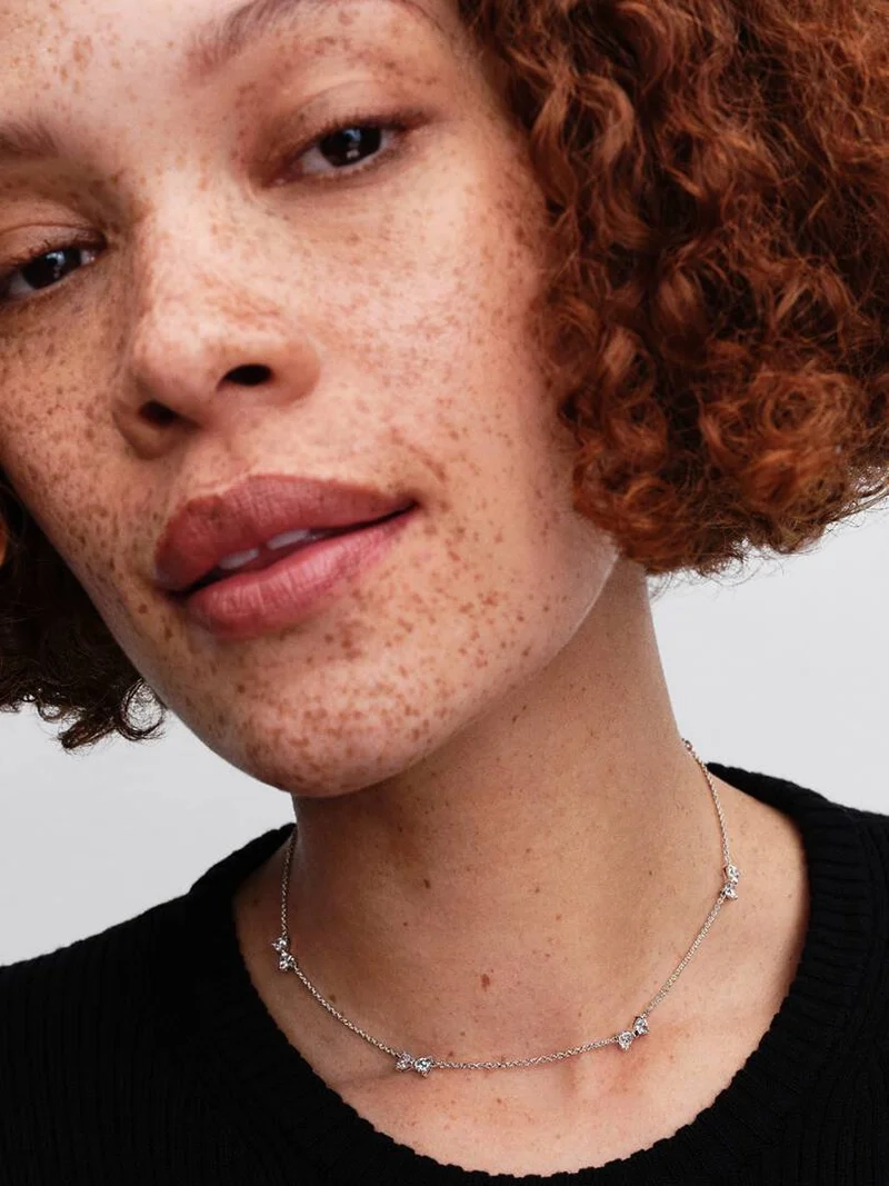 Manche Bande lösen sich nie. Diese Halskette aus Sterlingsilber ist mit Rosetten entlang der Kette verziert. Die Rosetten sind mit funkelnden Zirkoniasteinen verziert und symbolisieren Stärke und Schönheit.