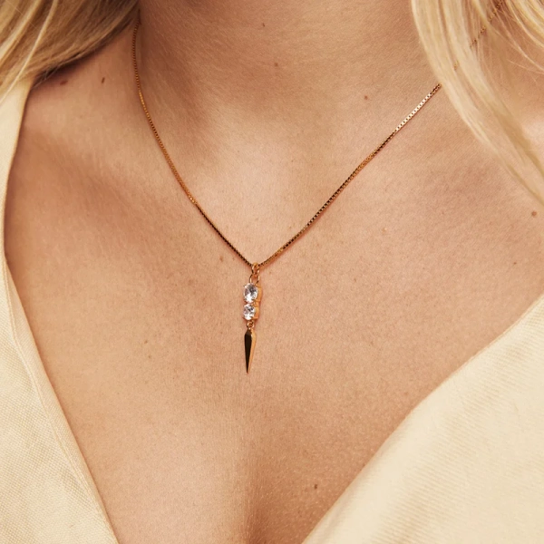 Minimalistisch und funkelnd mit einem Twist. Die magischste Halskette, von der wir geträumt haben, ist hier. Bereit, jeden Look und Anlass zu ergänzen. Kombiniere sie mit unseren neuesten Lieblingsohrringen Saga und kreiere eine wirklich magische Kombination.